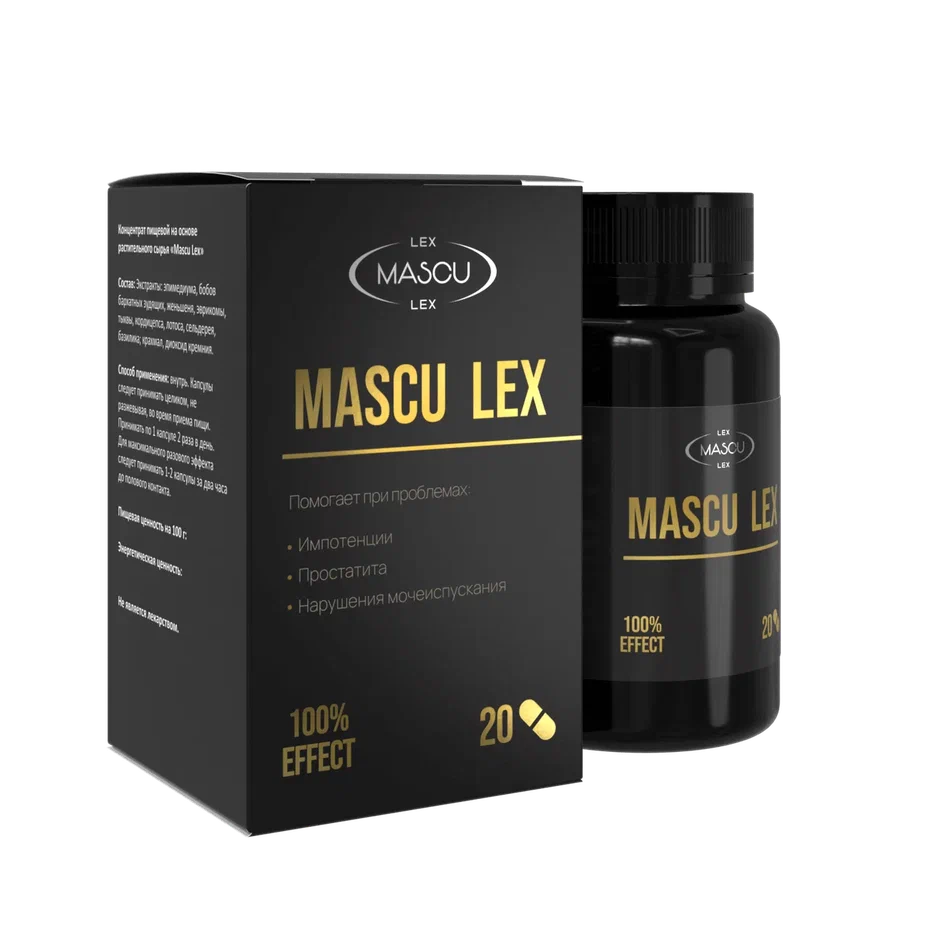 Mascu Lex — натуральный стимулятор сексуальной активности. Капсулы с запатентованной формулой многократно усиливают потенцию и дарят незабываемые ощущения во время секса обоим партнерам.